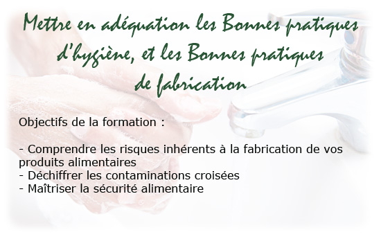 - Mettre en adéquation les Bonnes pratiques d’hygiène et les Bonnes pratiques de fabrication
